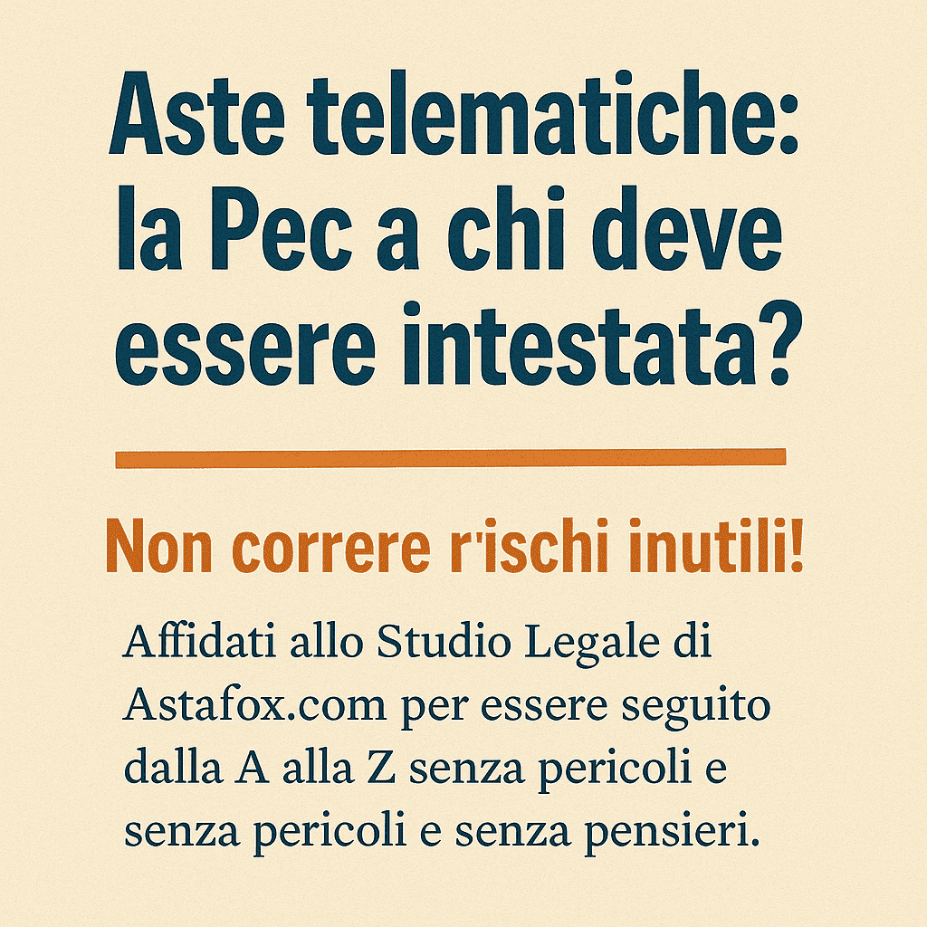 ✉️ Iscriviti OraLa pec, nelle aste telematiche, deve essere intestata all’offerente o al presentatore.